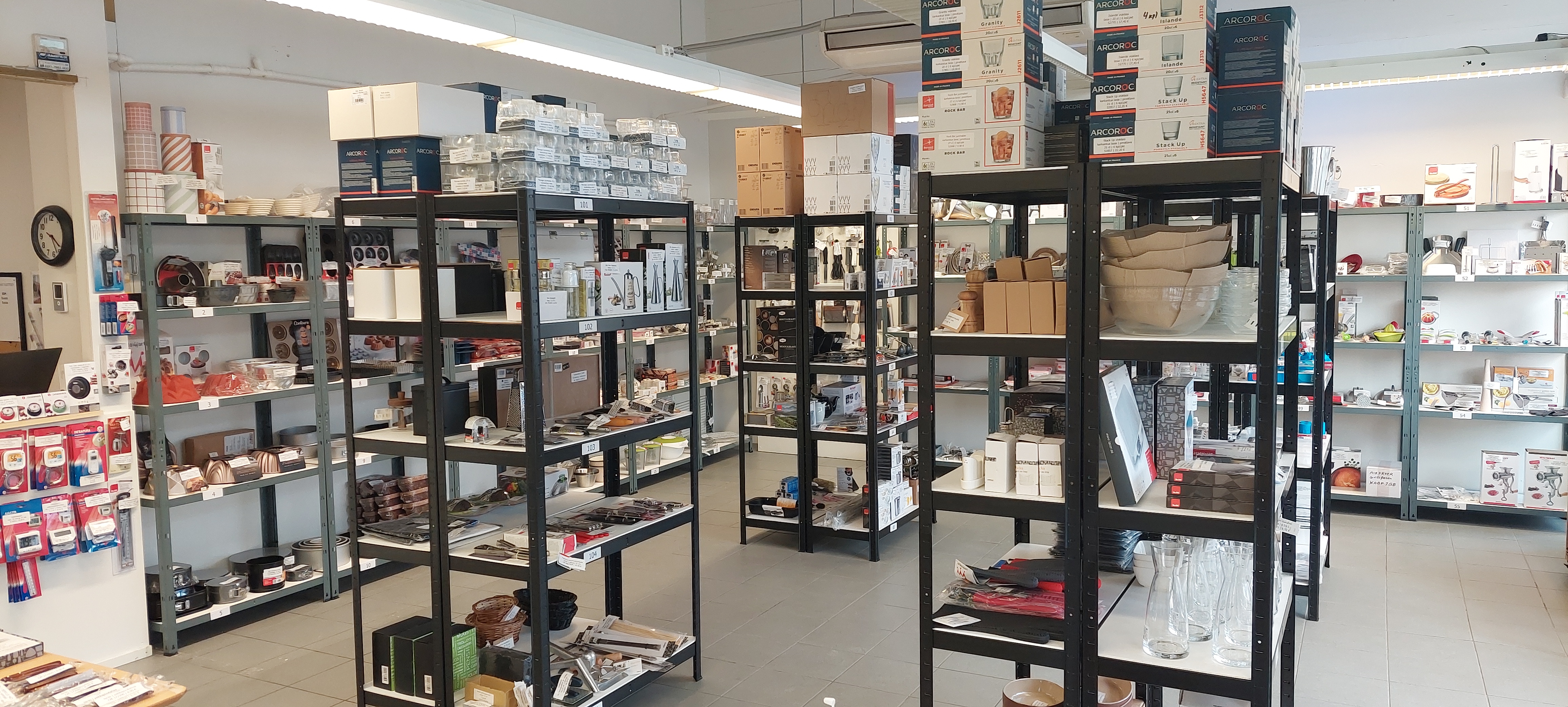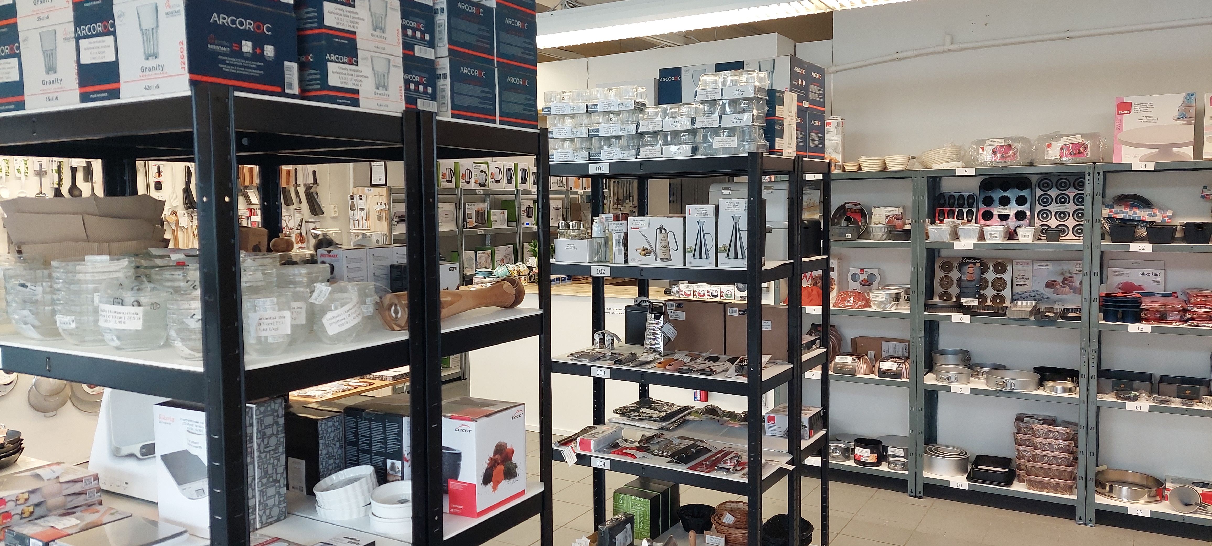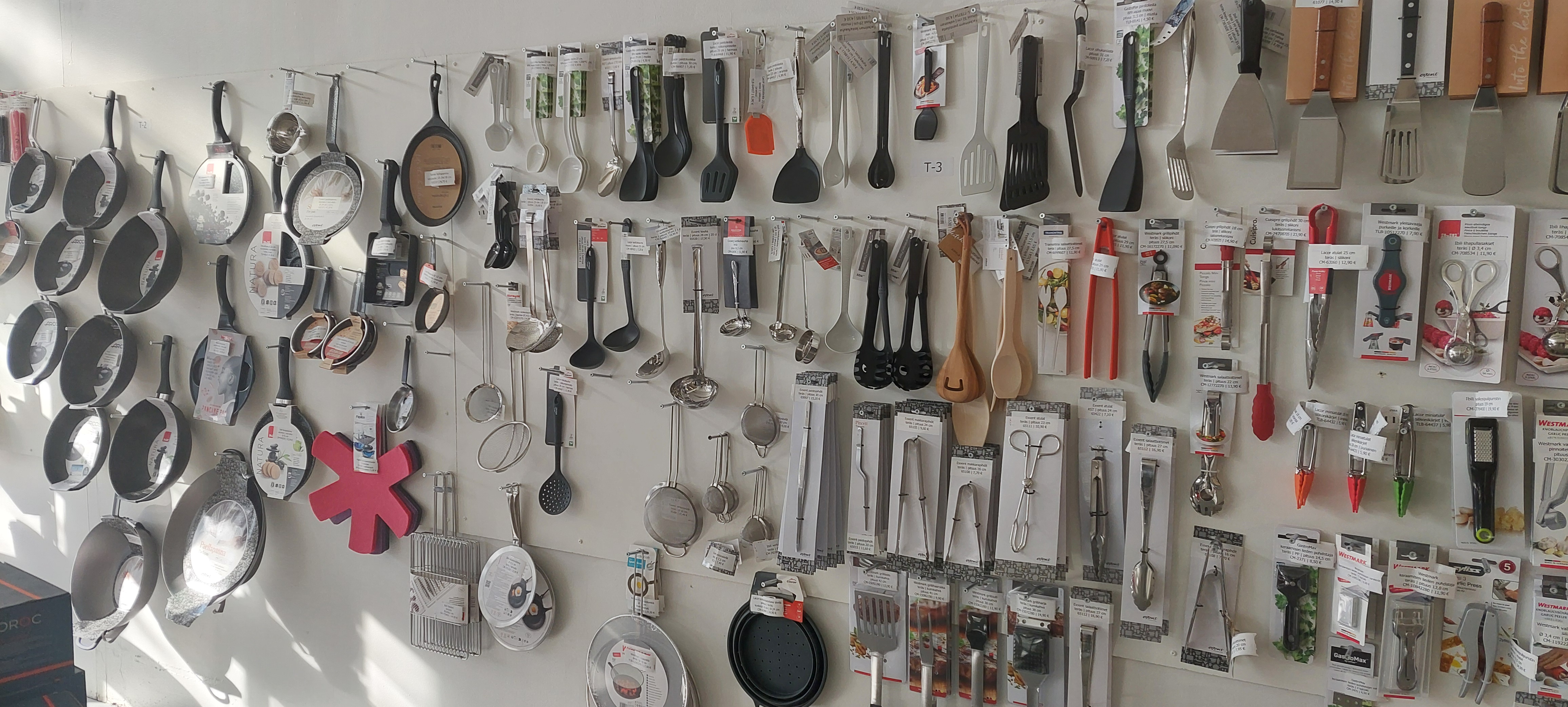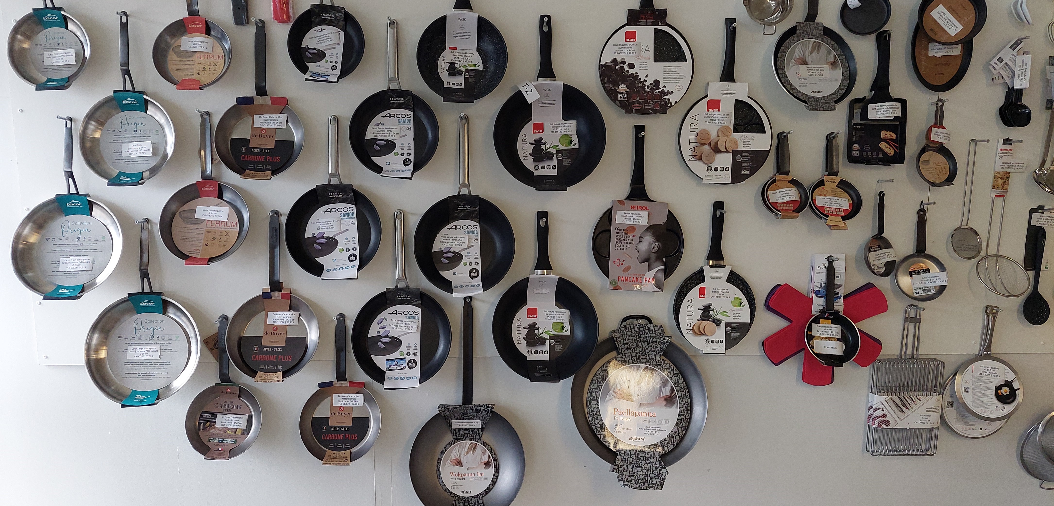Myymälässä on kattava valikoima laadukkaita keittiövälineitä, jotka on valittu huolella.