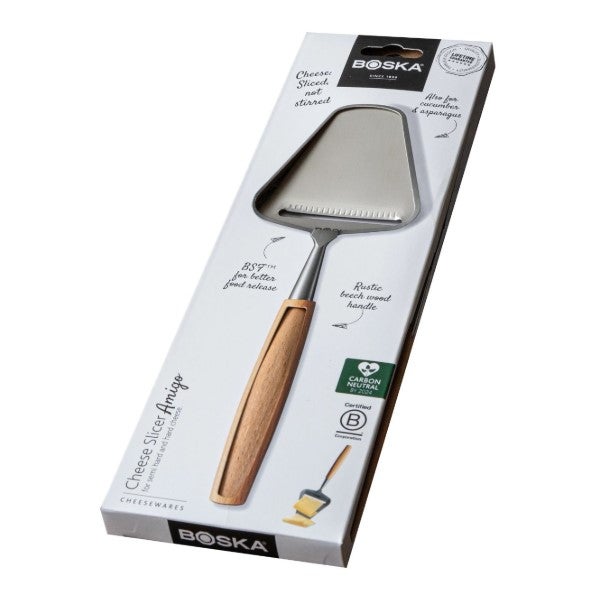 Kaikki Boskan Amigo sarjan juustöhöylät on viimeistelty Boskan omalla BSF™ eli Boska Surface Finish pintakäsittelyllä. Kyseessä on mekaanisesti karhennettu pinta, joka auttaa estämään juustoa tarttumasta höylään leikatessa ilman kemikaaleja. Suosittelemme juustohöylälle käsinpesua.