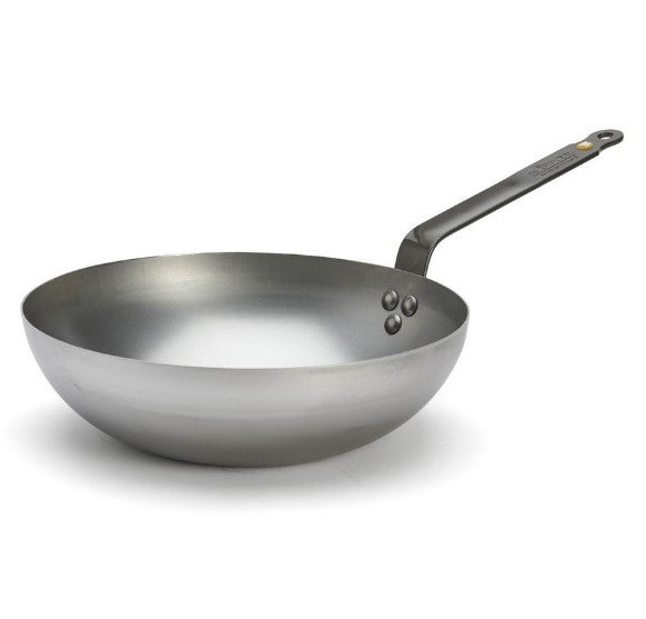 de Buyer hiiliteräksinen wokkipannu terveelliseen ja nopeaan ruoanvalmistukseen, jossa käytetään vain vähän rasvaa.