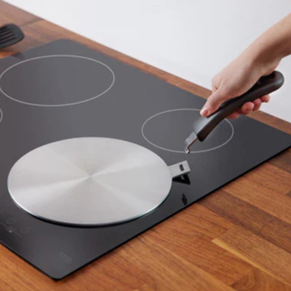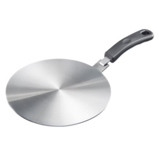 Induktiovälilevyn avulla voi induktioliedellä käyttää myös alumiinisia ja muita keittoastioita, jotka normaalisti eivät liesitasolla toimi.
