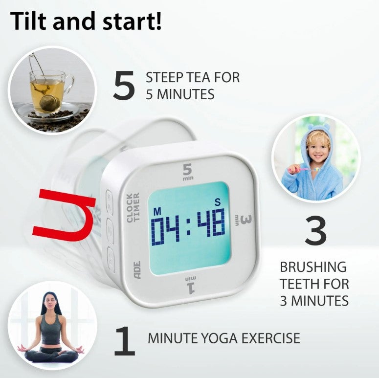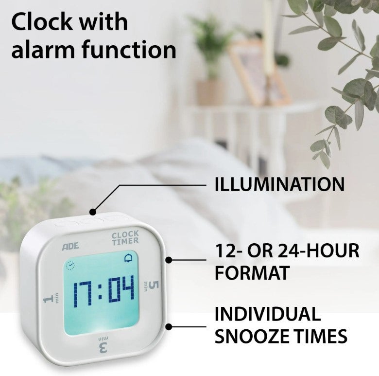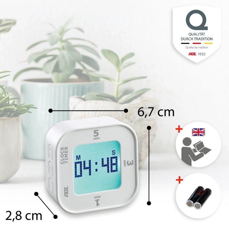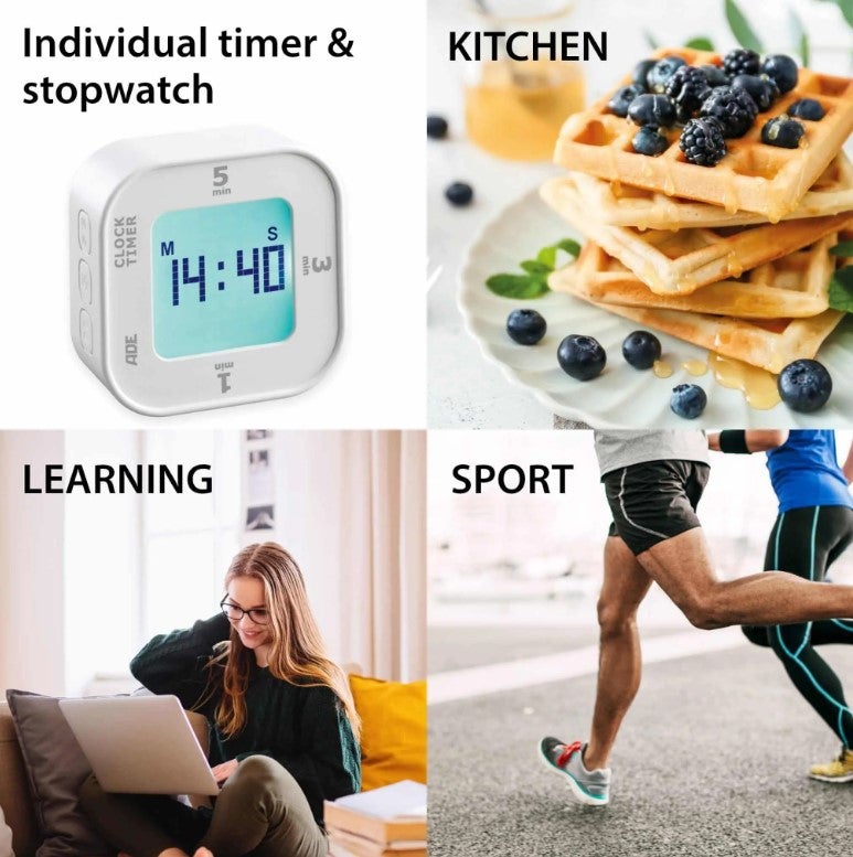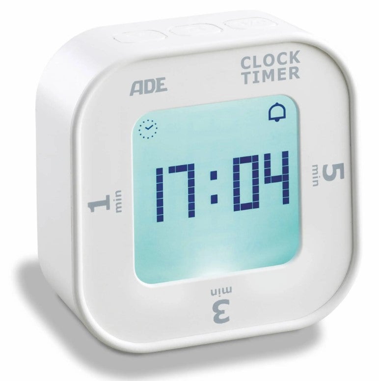ADE digitaalinen keittiöajastin, joka näyttää myös kelloajan ja palvelee hyvin myös keittiön ulkopuolella!