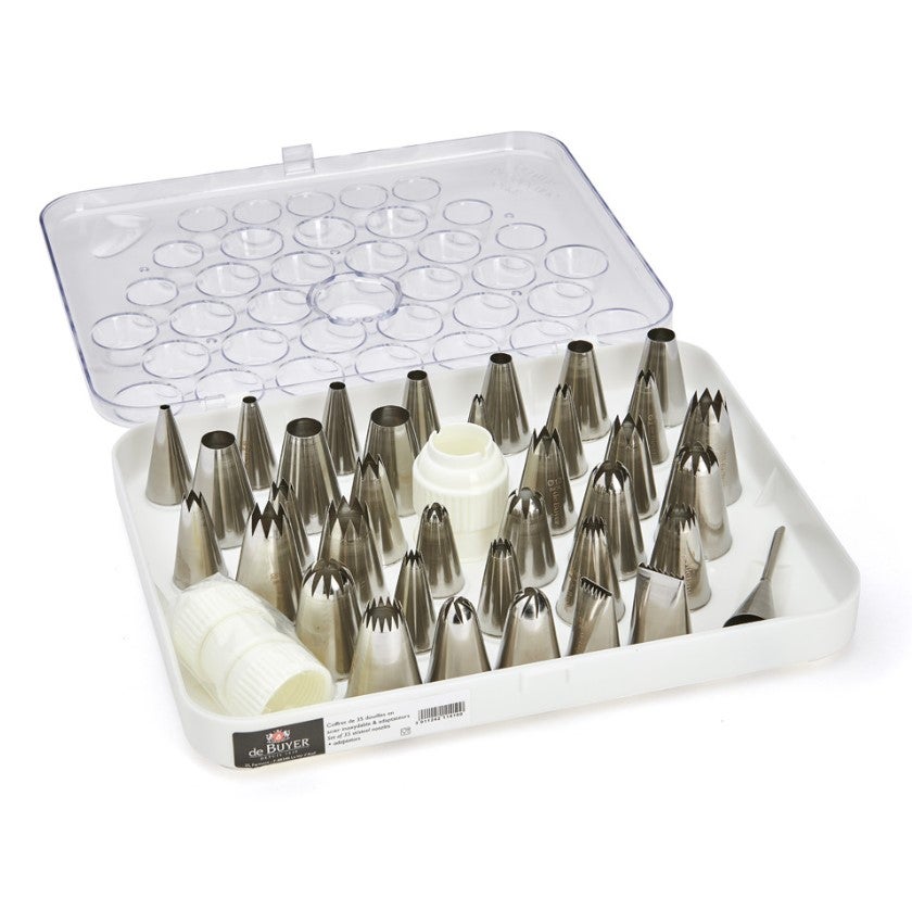 Iso tyllasetti, jossa 35 ruostumatonta tyllaa sekä 2 soviteosaa.