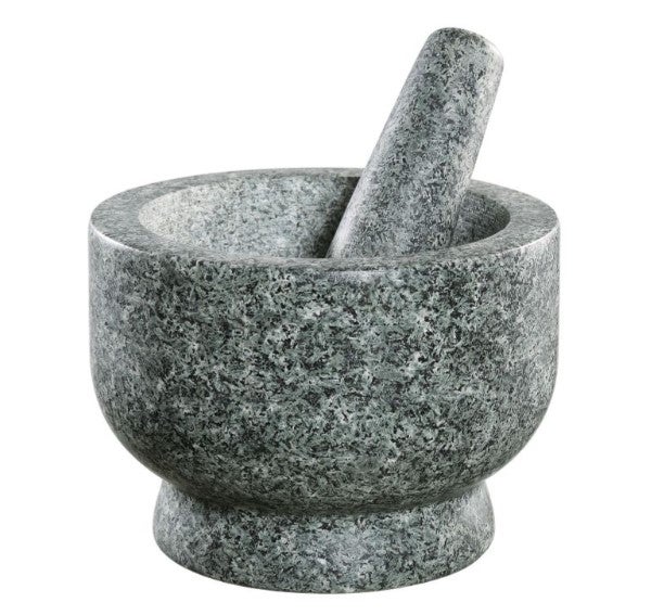 Tukeva ja korkealaatuinen graniitista valmistettu iso mortteli yrteille ja mausteille.