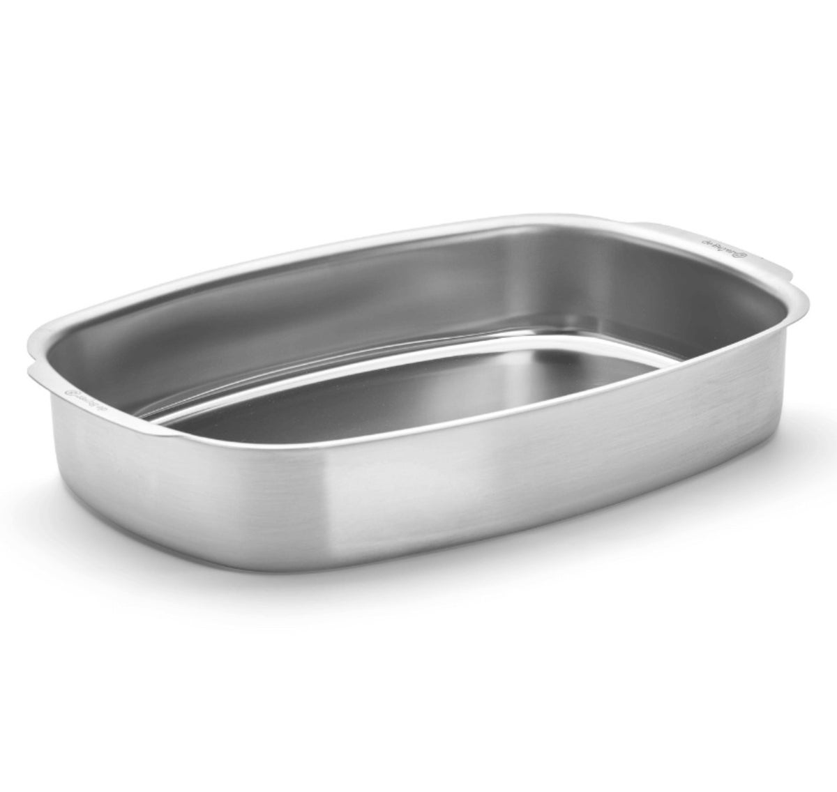 Korkealaatuisesta ruostumattomasta teräksestä valmistettu uunivuoka kahvoilla.