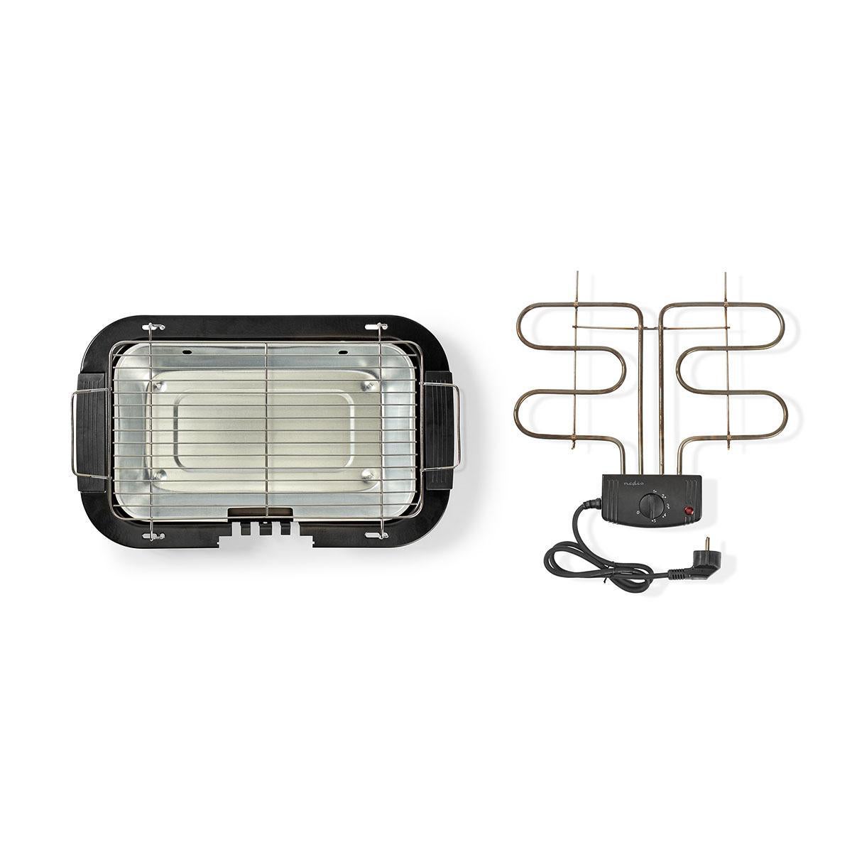 Sähkögrilli, jossa termostaatti ja alumiininen vesialusta.