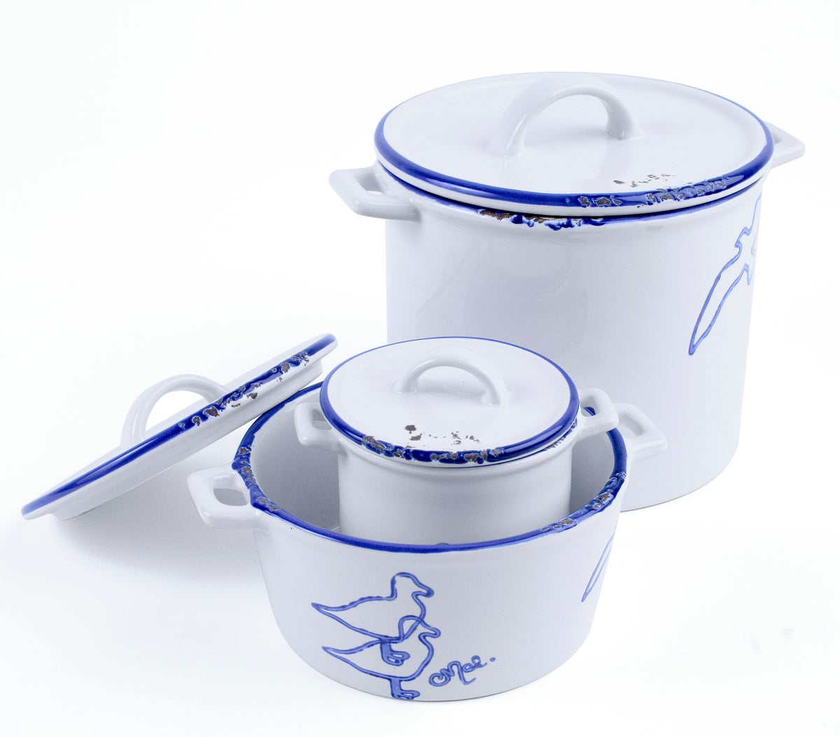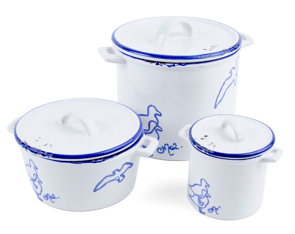 -60% Coastline kulhosetti | kivitavaraa | 3 kokoa | lahjapakkaus | valkoinen/sininen