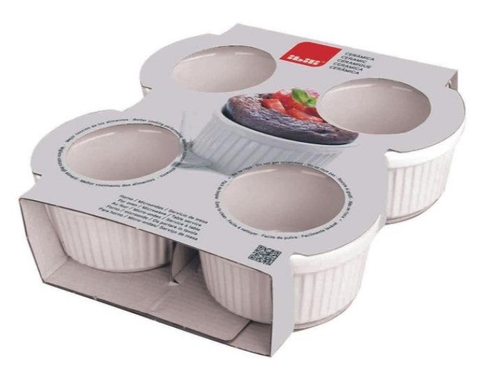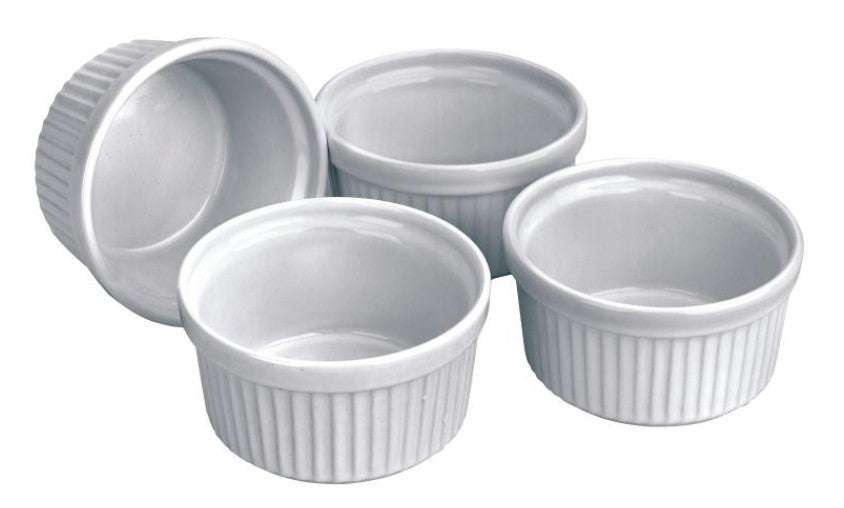 Posliininen souffle- eli kohokasvuoka lasitetusta posliinista.