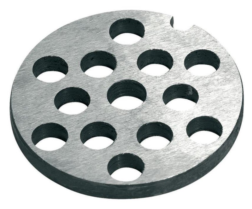 Hiiliteräksestä valmistettu reikälevy Westmarkin lihamyllyyn koko 10.