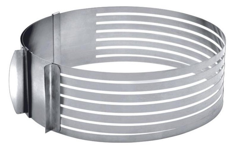 Tällä Ibilin ruostumattomasta teräksestä valmistetulla kakunleikkausrenkaalla saat kakkupohjan leikattua helposti jopa seitstämään kerrokseen.