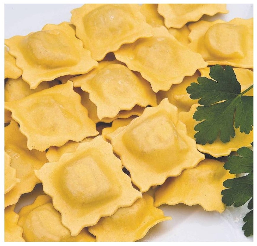 Nelikulmainen teräksestä valmistettu raviolistanssi.