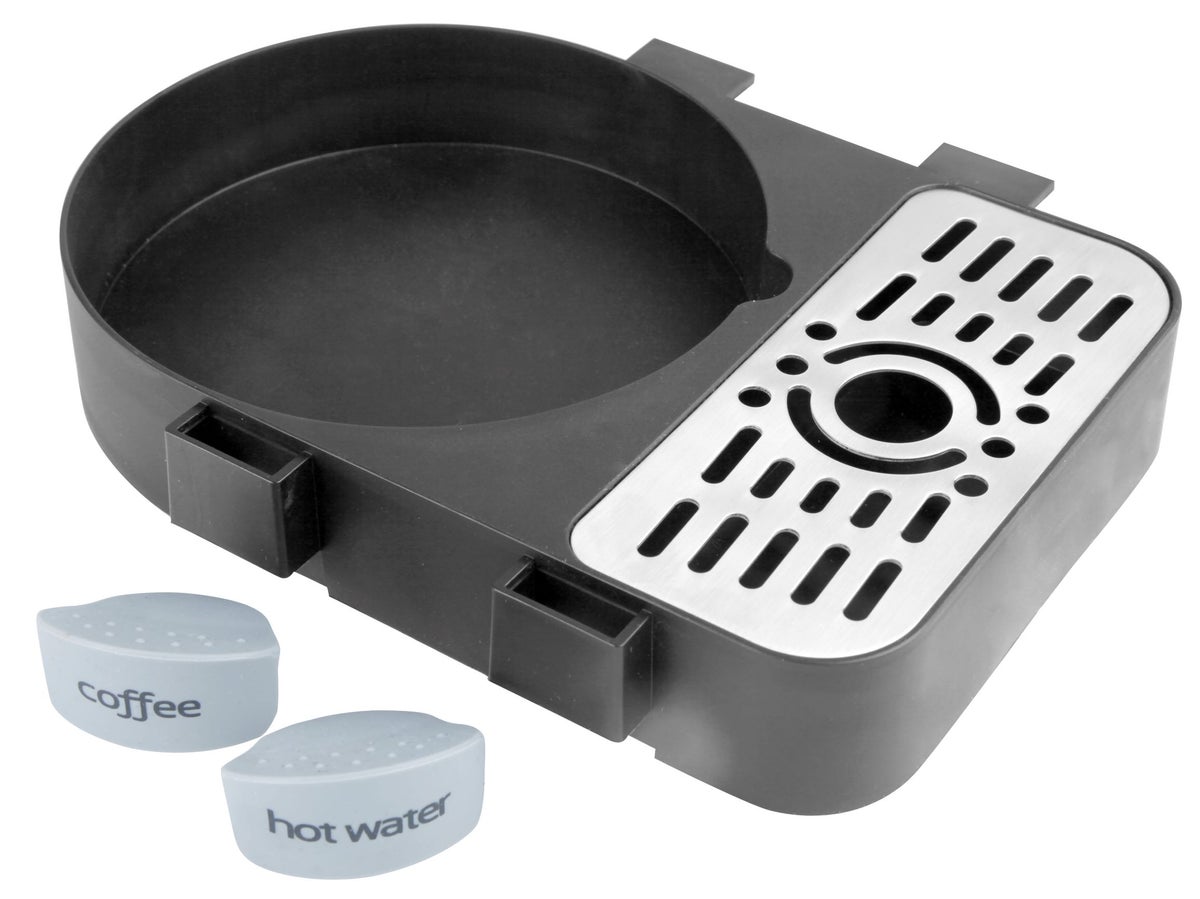 Kestävä ja tukeva, silikonimerkeillä varustettu tippa-alusta pumpputermoksille. Alustaan sisältyy merkit kahville ja kuumalle vedelle. Sopii täydellisesti esimerkiksi kahvilaan tai lounasbuffettiin.
