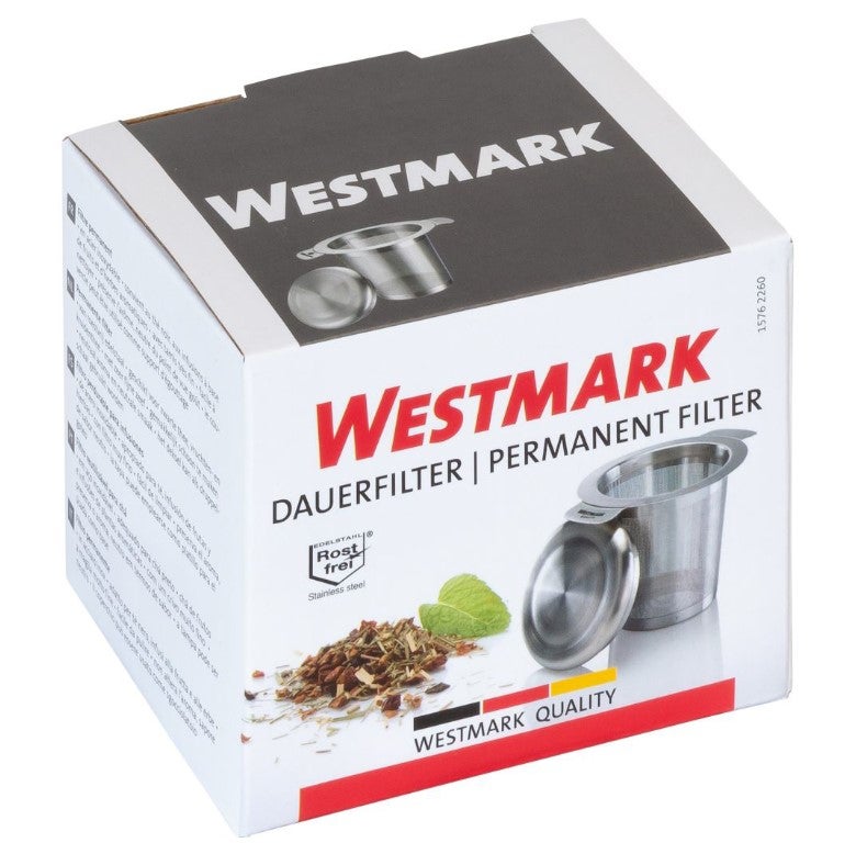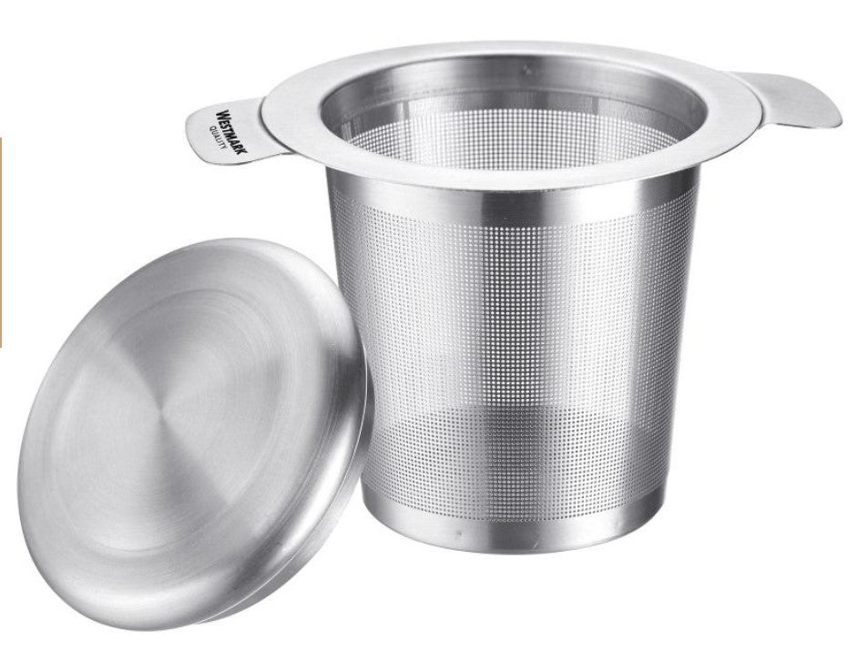 Ruostumattomasta teräksestä valmistettu tiheä teesuodatin jossa teelehdet pääsevät kunnolla avautumaan.